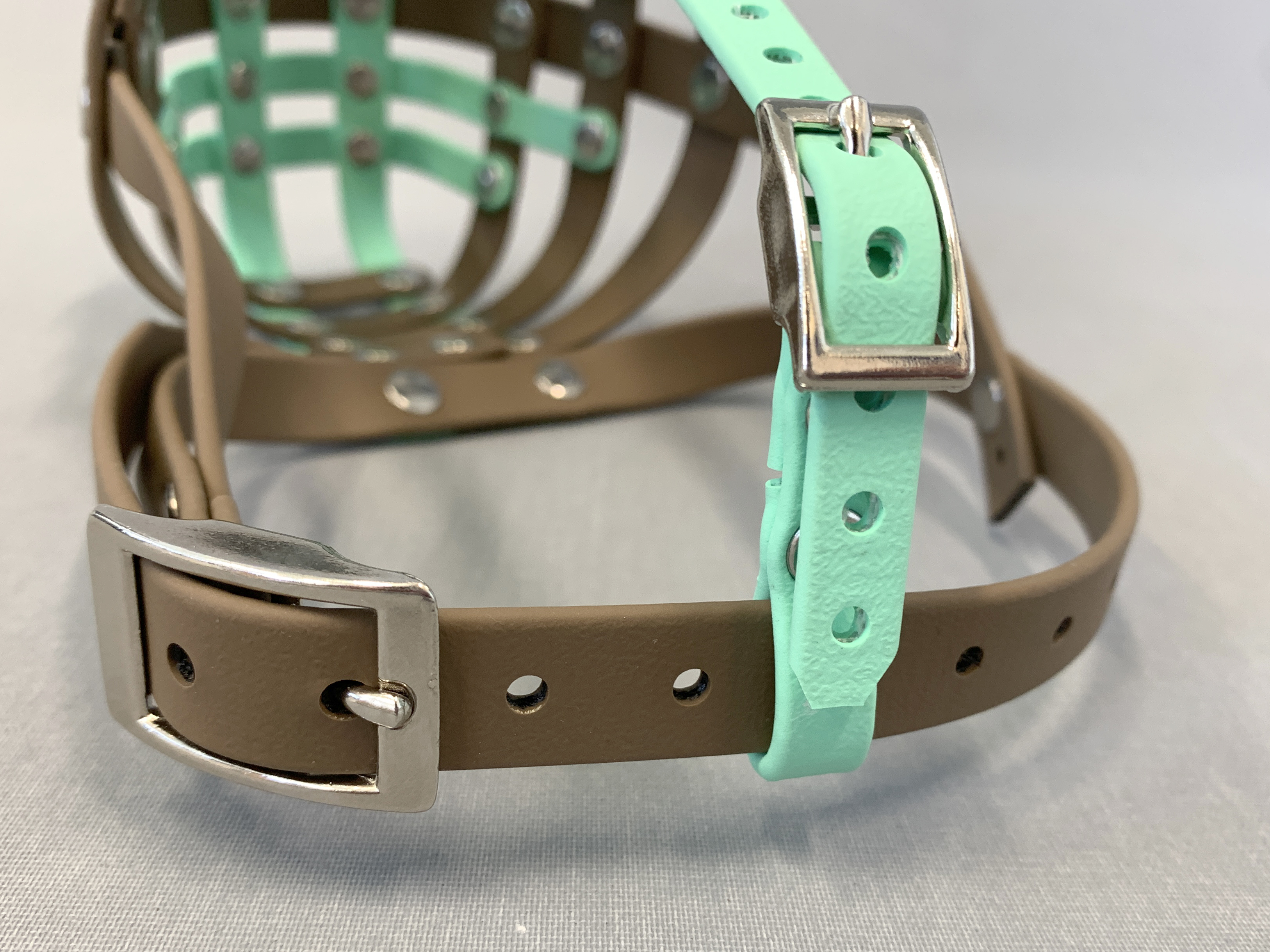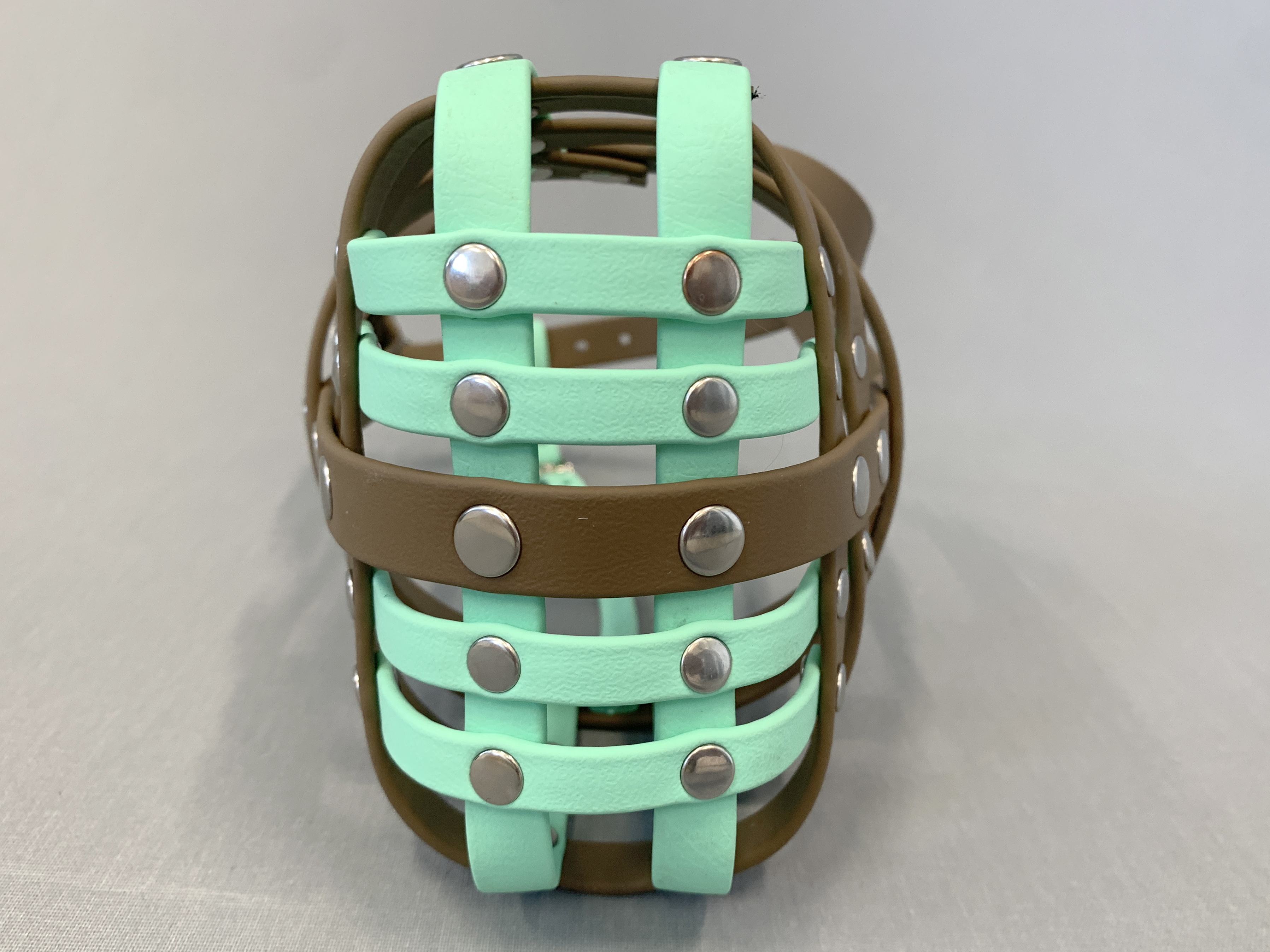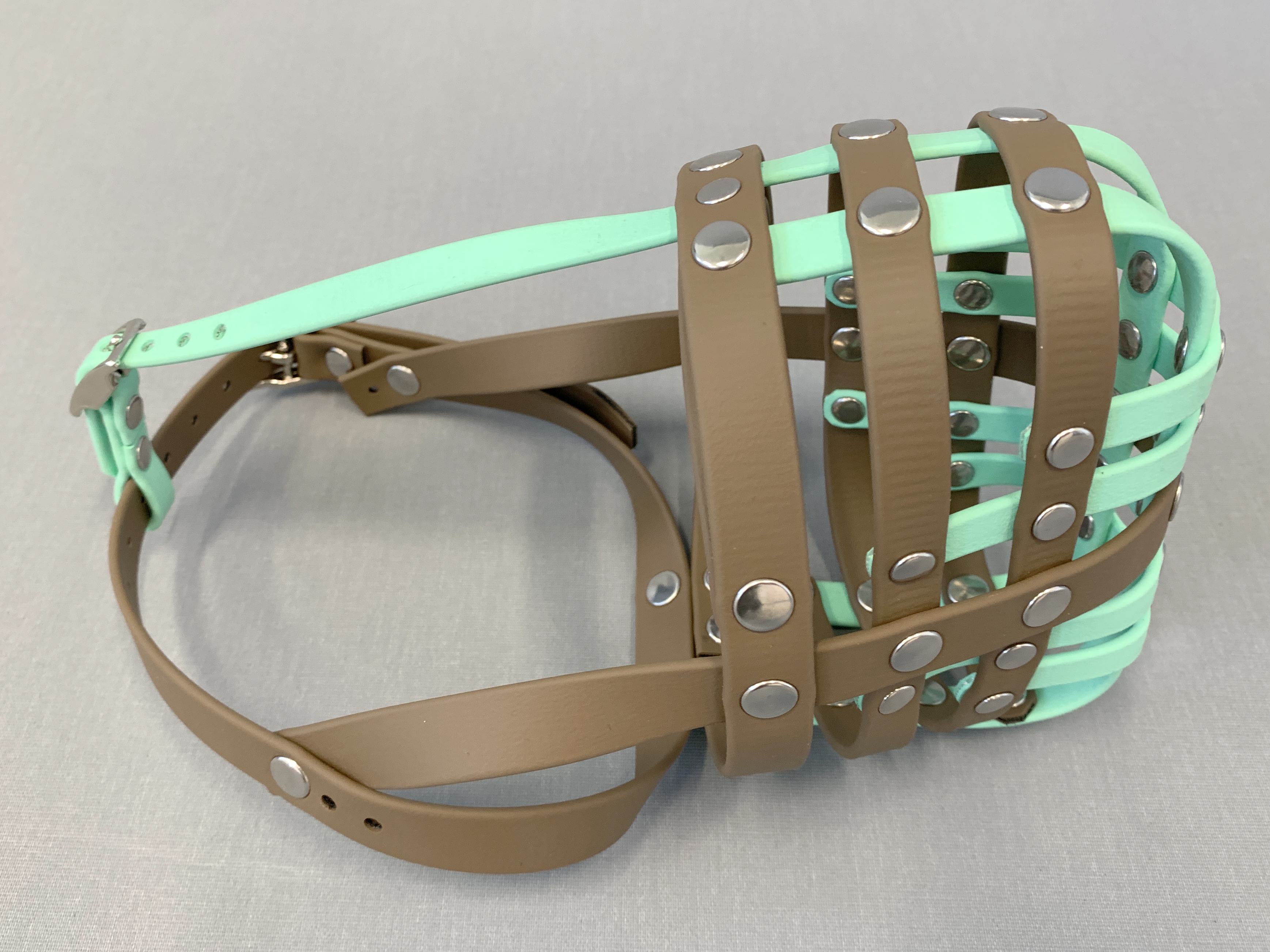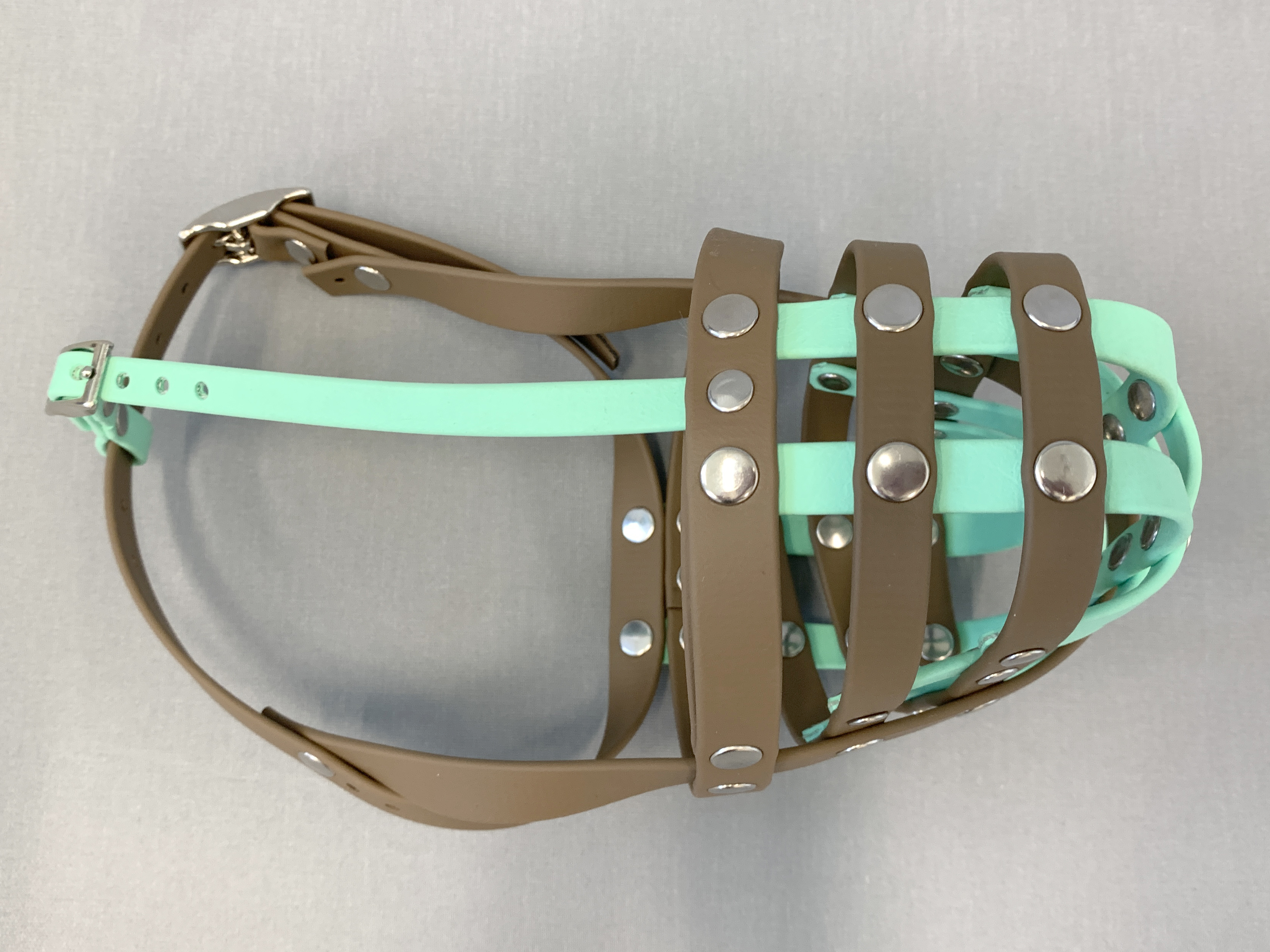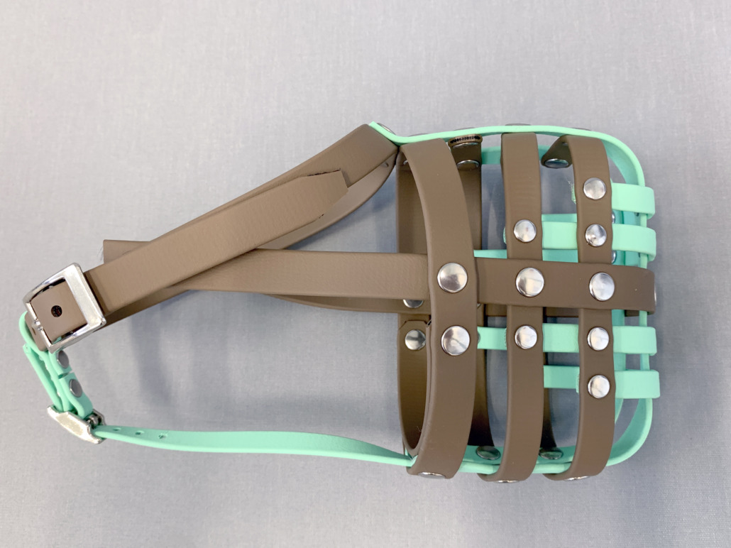 Maßgefertigter Maulkorb, braun/türkis, aus BioThane